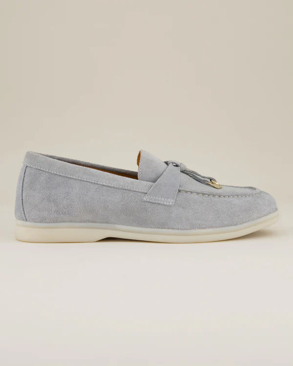 De zachte, grijze tint gecombineerd met kwastdetails maakt deze loafers tot een veelzijdig onderdeel in elke garderobe. Perfect te combineren met een donkerblauw pak voor zakelijke afspraken in Amsterdam of Londen, of met een casual outfit voor een weekend in New York of Kopenhagen. Deze loafers zijn ontworpen voor iedereen die waarde hecht aan minimalistische elegantie en comfort.